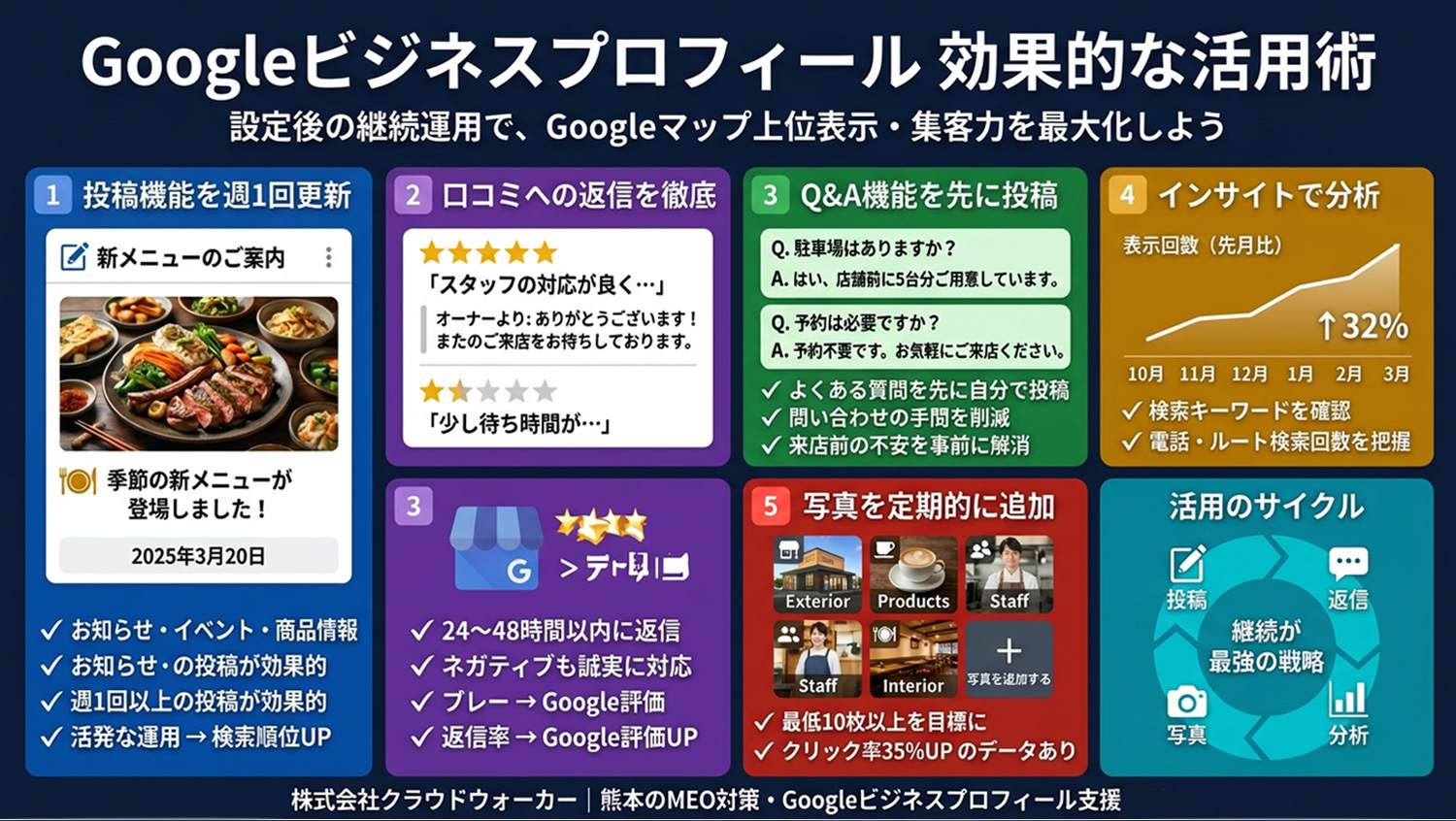 本記事では、基本的な設定方法から効果的な活用術まで、熊本のMEO対策専門家がわかりやすく解説します。