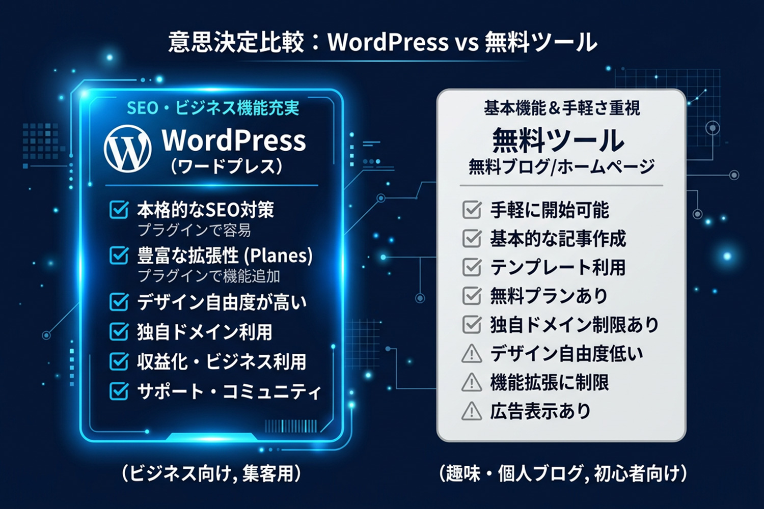 WordPressと無料ツールの比較